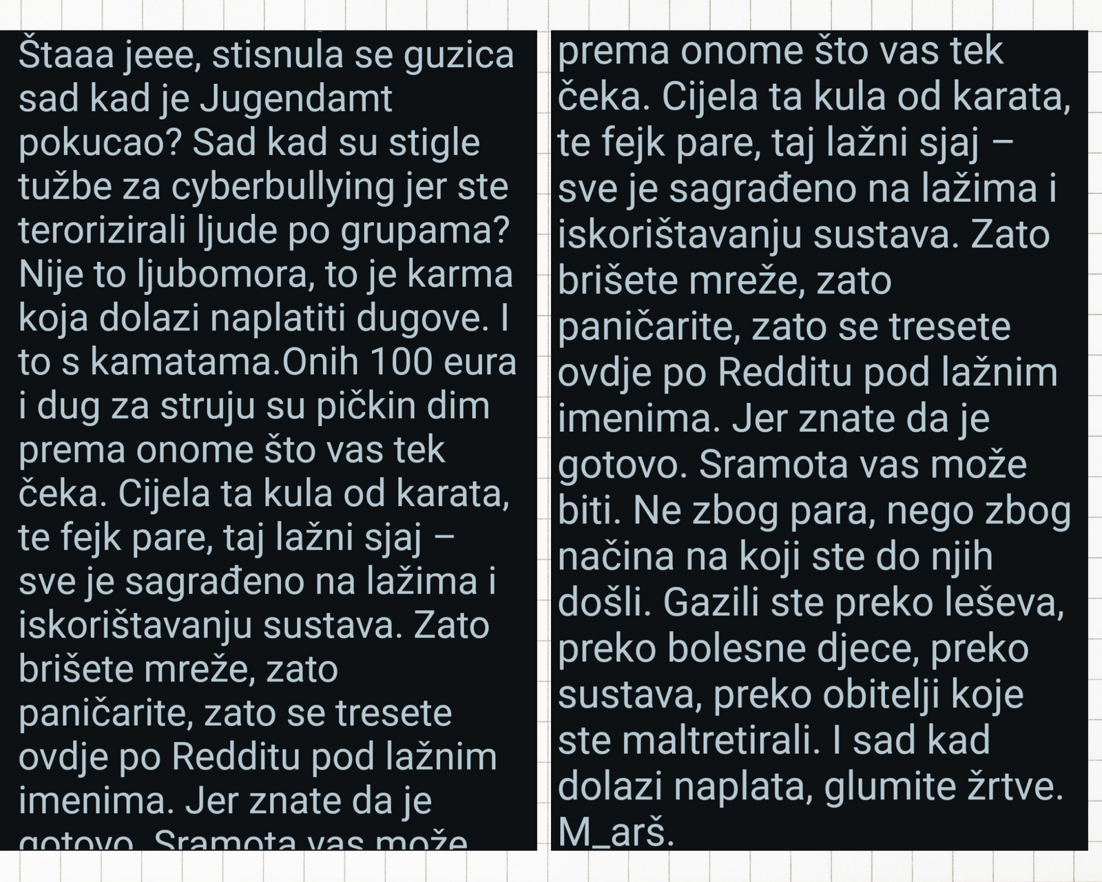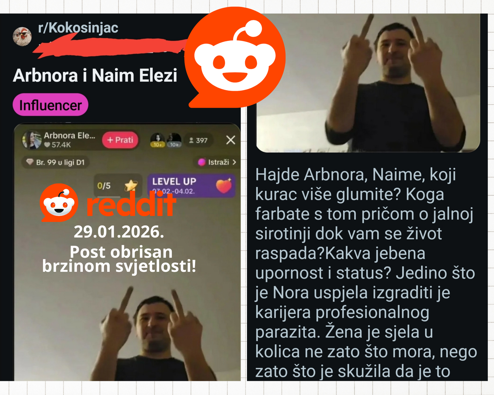 Bravo za osobu koja je ovo napisala na Redditu, 29.01. i obrisano je naravno. Gospodine ili gosdpođo,ovdje možete pisati bez cenzure. Odličan osvrt. #Arbnora#reditt