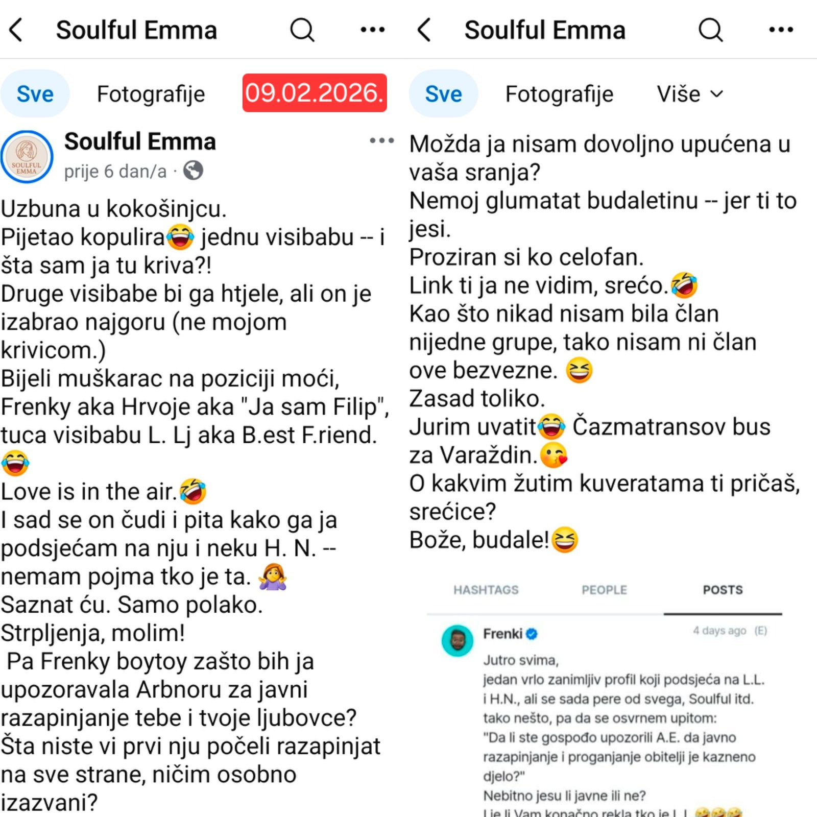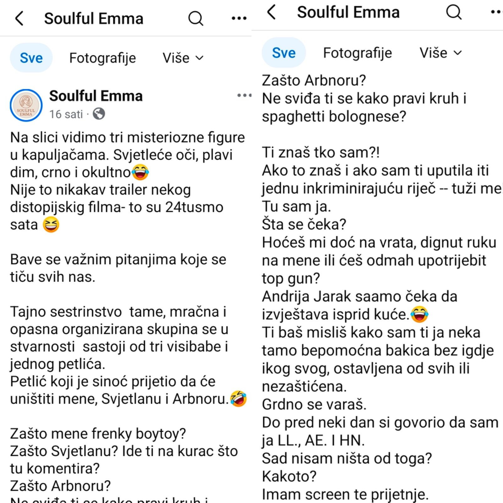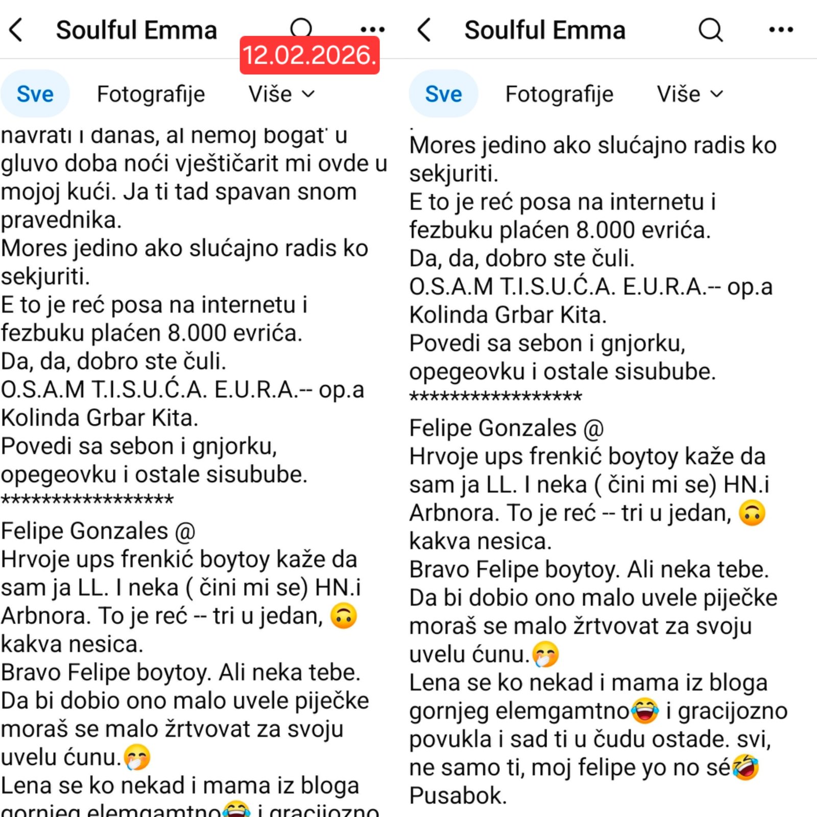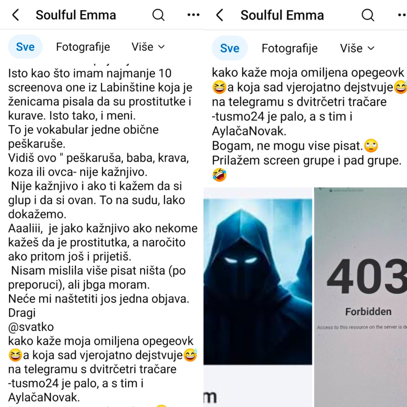 Pošto prijete nekim screenovima, pa eto imamo i mi sve njihove i sa prethodnih, raznoraznih profila.